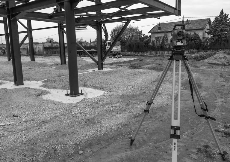 Utilisation de stations totales pour les relevés et implantations complexes ou intervention de partenaires géomètres.