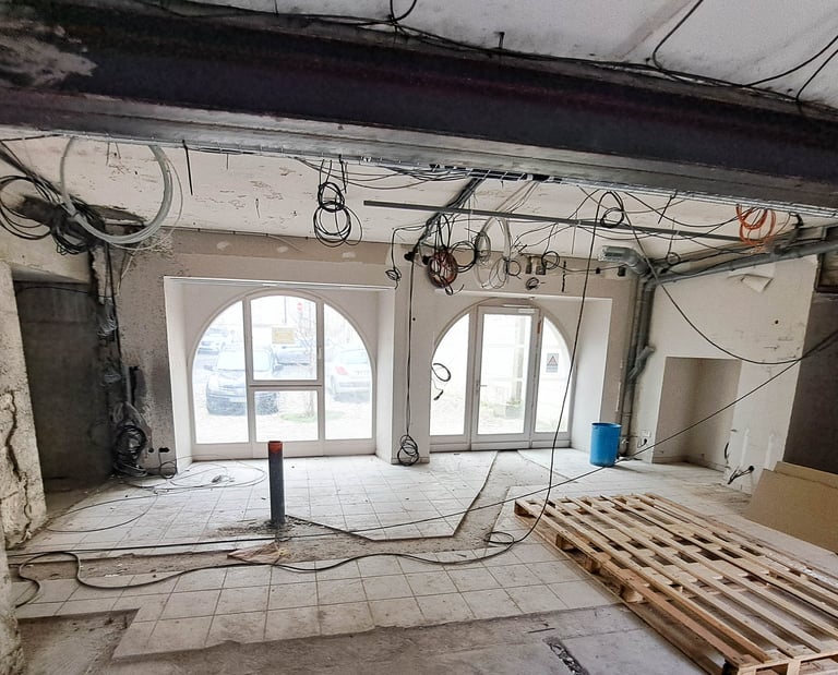 Réalisation d'ouvertures en sous-œuvre avec mise en place de profilés métalliques ou poutres béton armé.