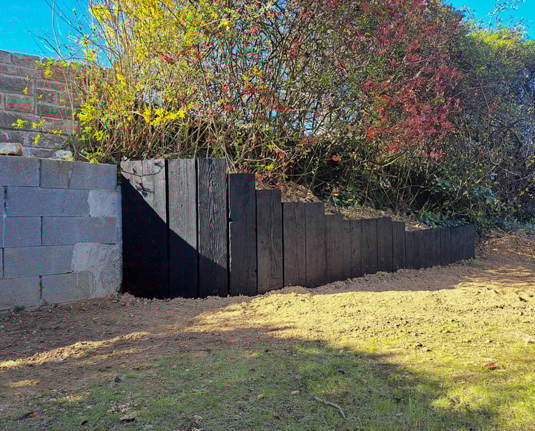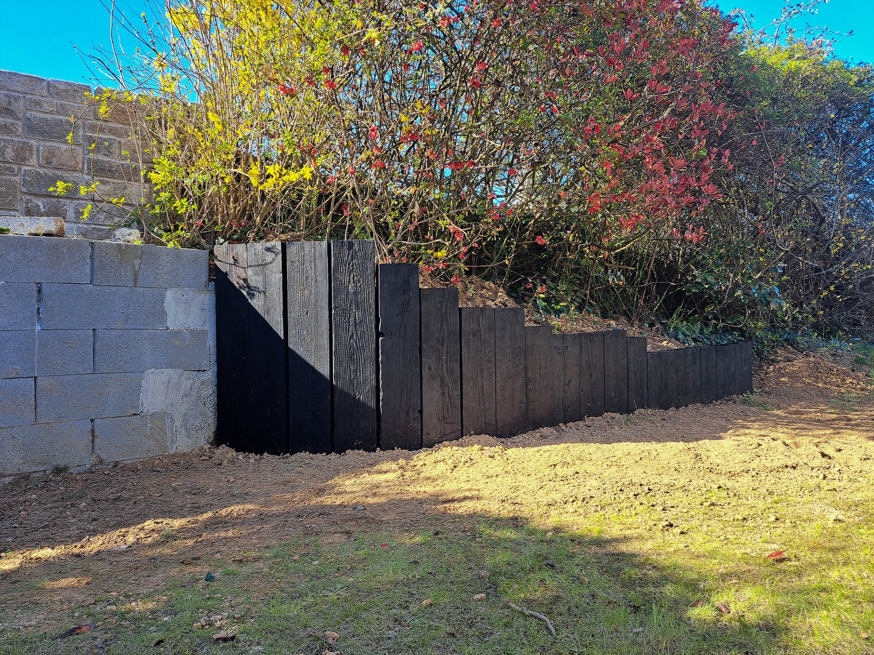 Rélisation d'un mur de soutènement autostable en agglos à banché. Semelle inversée en butée.